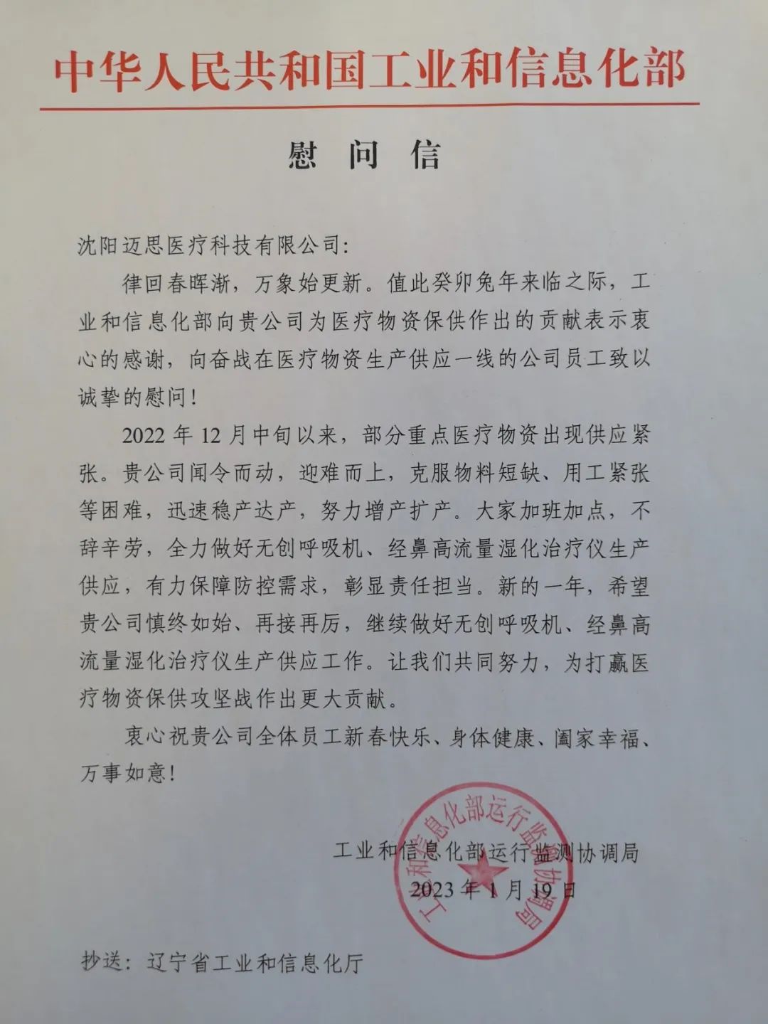 ?2022年年底,全國(guó)各地防疫物資需求增大,邁思在原料供應(yīng)、熟練技術(shù)工人、生產(chǎn)成本面臨著巨大壓力和挑戰(zhàn)。在這關(guān)鍵時(shí)期,我司得到了國(guó)家、省、市、區(qū)各級(jí)政府的大力支持。沈陽(yáng)市委市政府主要領(lǐng)導(dǎo)、國(guó)家工信部、遼寧省工商聯(lián)、沈陽(yáng)市總工會(huì)和市政府各相關(guān)部門(mén)領(lǐng)導(dǎo)和同志先后蒞臨企業(yè),深入一線,從原料供應(yīng)、人力招募和慰問(wèn)、注冊(cè)審批等多個(gè)關(guān)鍵環(huán)節(jié)幫助企業(yè)破解難題。使邁思在過(guò)去50天產(chǎn)能產(chǎn)量逐日提升、有力保障了防疫救治物資的研發(fā)生產(chǎn)和銷(xiāo)售。